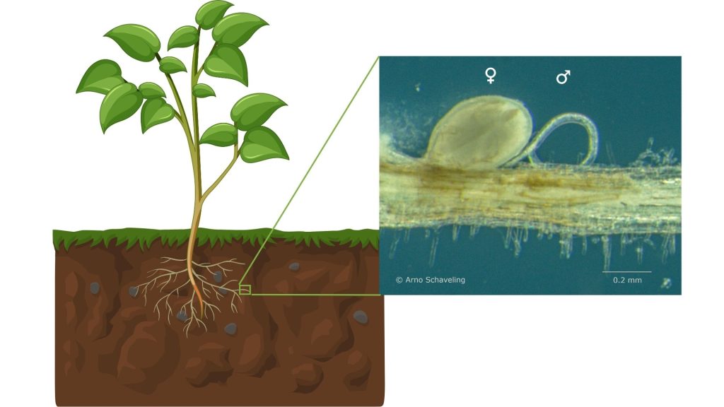 Potatoes and nematodes are in a constant battle in which nematodes try to invade potatoes to withdraw essential nutrients from the plant. Potatoes, in turn, try to defend themself against the nematodes with resistances that aim at restricting nematode development. To escape resistance, the nematodes try to evade and suppress this defence response.
